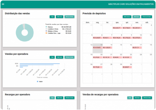 O lojista pode acompanhar as transações e ter acesso à relatórios de fácil compreensão, com várias opções de filtros, como bandeiras, operadoras, lojas e PDV.
